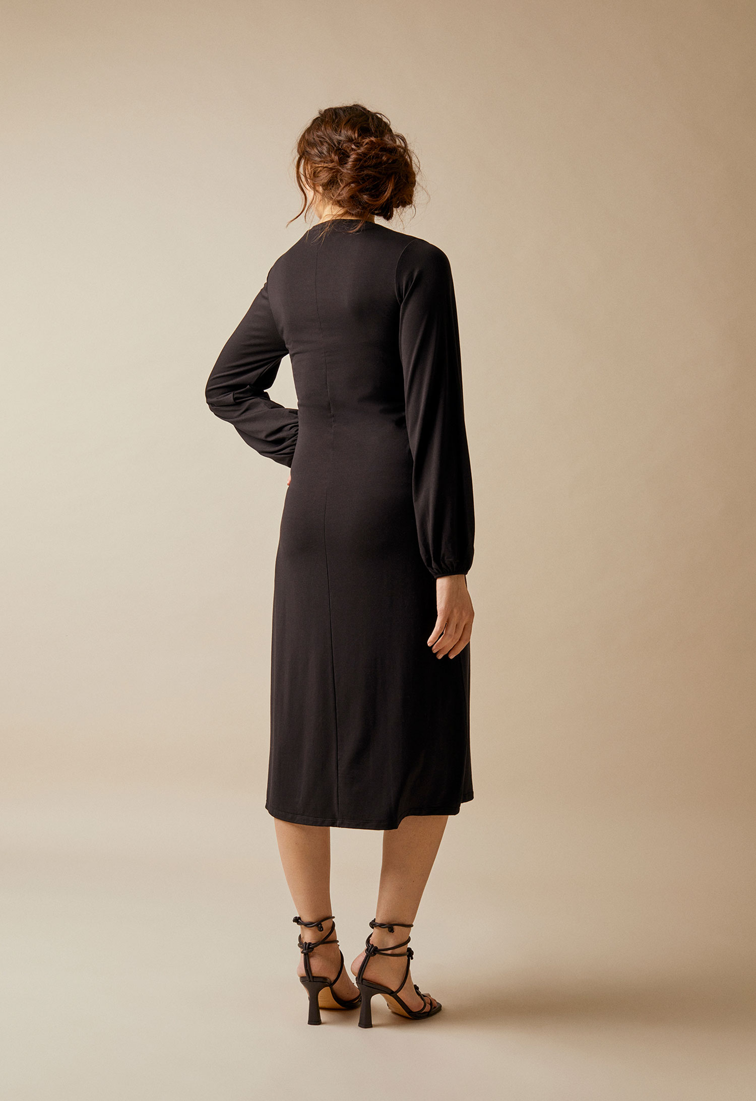 A combined maternity and nursing dress you can transform from casual to festive throughout the day. From slippers to sneakers to heels and back again. With a round neckline, puff sleeves and our classic nursing access hidden under the flattering